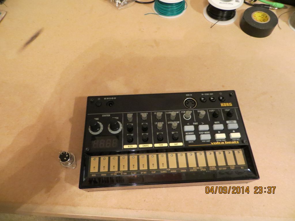 I took some time last weekend to do the MIDI out mod on the Korg Volca Beats. It took some research but I had some help from a couple of websites. It was a lot of fun to make, although it ended up being a little on sloppy side cramping everything back in the unit once I got done.